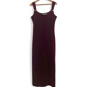 * Fashion Bug Velvet Maxi Dress 16 Burgundy Slip Y2K Whimsigoth Fairy Witchy Vtg