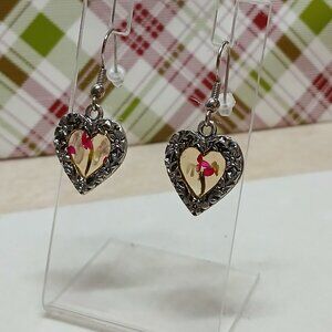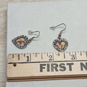 Vintage Fashion Costume Jewelry Metal Silver Tone Flower Hoop Earrings #75W