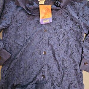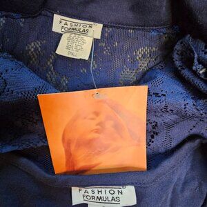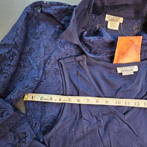 Vintage Fashion Formulas 2 piece set. Blue tank top, matching blue sheer lace long sleeved top.