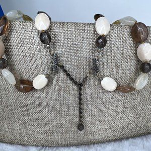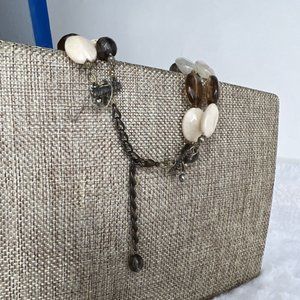 Vintage Fashion Jewelry Necklace Beaded Layered Brown White