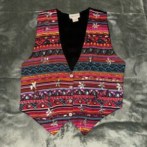 Vintage Fashion Passport Vest Women’s Medium Multi Aztec Pockets Embellished 80s