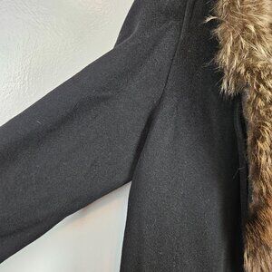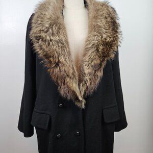 Vintage Fashions by Jill Wool Trench Coat Fur Trim Women's Sz 14 Black Worumbo