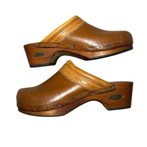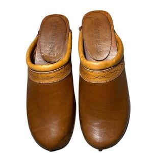Vintage Father & Son Valleria Cognac Brown Leather Clog Heeled for Women Size 8