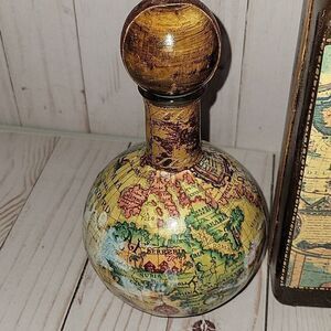 Vintage Fausto Corduri Old World Map 2 Wine Decanter Bottles Florence Italy