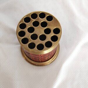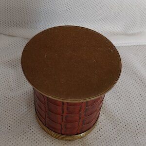 Enhance your home decor with this vintage brown pencil/pen holder featuring a crocodile pattern.