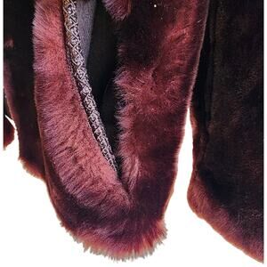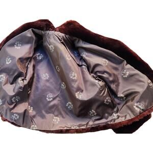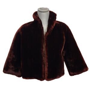 Vintage Faux Beaver Cropped Jacket Burgundy Brown Sz S Mob Wife