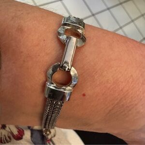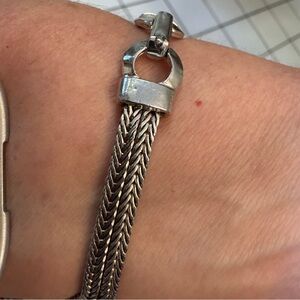 Vintage Faux Blue Moonstone and Rhinestone Wheat chain Bracelet. SIZE 7.5”