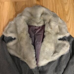 Stay warm and stylish with this elegant gray coat featuring a luxurious faux fur collar. Perfect for any occasion, this coat combines comfort and sophistication.