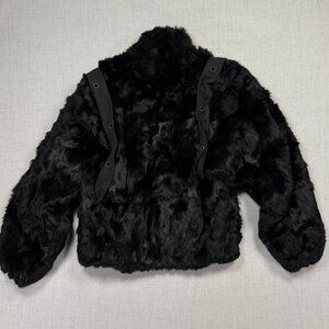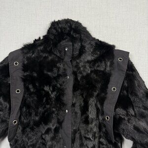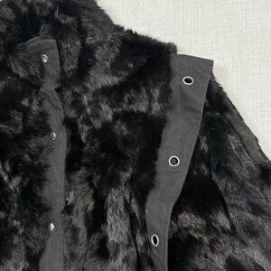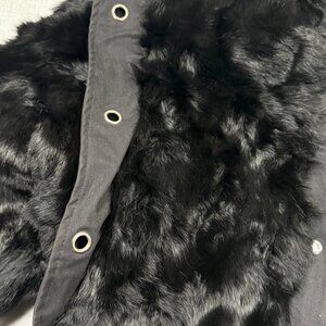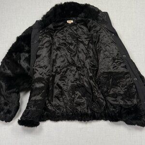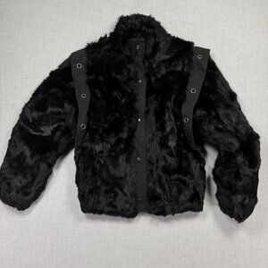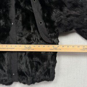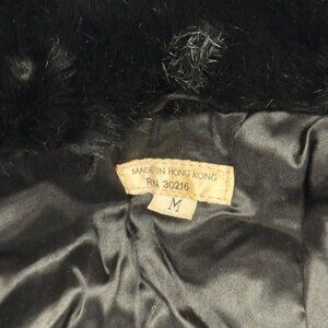 Vintage Faux Fur Jacket Grommet Accent Black Made in Hong Kong Lined Size M