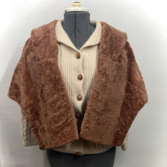 Vintage Faux Fur Shawl Collar Jacket Brown Hook Closure Plush Lined