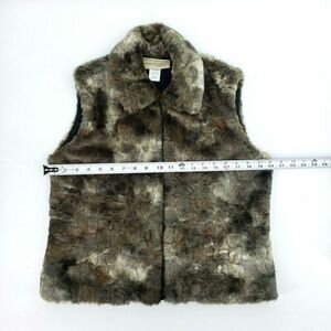 Vintage Made in USA Painted Pony Faux Fur Vest. Full Zip. Collared. Pop up or leave it down. Marbled Pattern of Brown, Gray and white colors. Women's Size Small. Measurements in photos. Excellent Pre-owned Condition. No rips, holes, or stains. Comes from smoke free environment. Super Soft and realistic looking. Feels so luxurious!