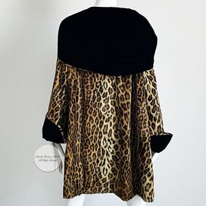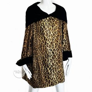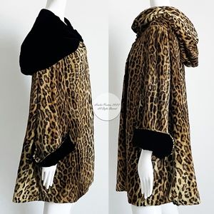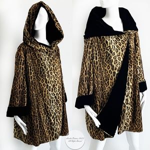 Vintage Faux Leopard Swing Jacket or Coat Reversible Huge Shawl Collar Hood 90s