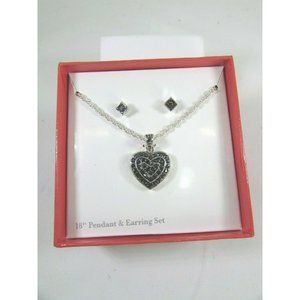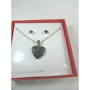 Vintage Faux Marcasite Heart Pendant Pierced Earrings Set 51771