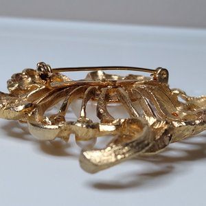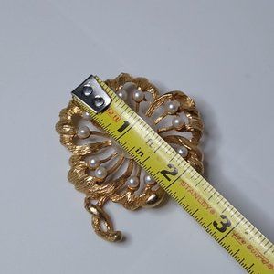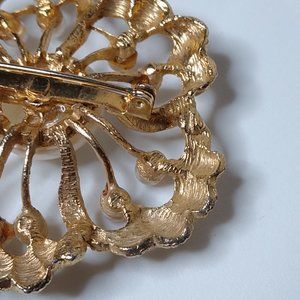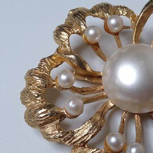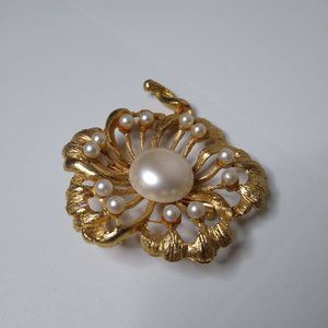 Vintage Faux Pearl And Metal Large Flower Brooch