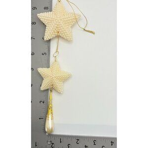 Vintage Faux Pearl Beaded Star Christmas Tree Ornament Dangle with Gold Accents