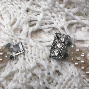 • the faux pearls do have flaking / wear, please see images. One part of necklace came partially detached - still functional (pic 7, lower left side). About 16.5".