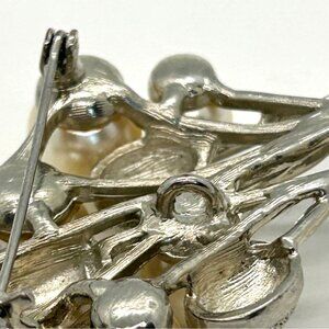 Vintage Faux Pearl Brooch Statement Silver-tone Balloon Bouquet with Bow 2.5 In