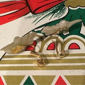 Perfect for holidays parties!! So stunning. They are clip on style & from a smoke free home. They measure approximately 1 1/4” x 3/4”. In very good condition!!