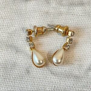 Vintage Faux Pearl Diamond Costume Jewelry Necklace Drop Earring Set