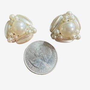 Vintage Faux Pearl Earrings Clip On Round Oval Beads Made in Hong Kong