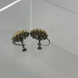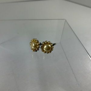 Vintage Faux Pearl Flower Shaped Screw Back Earrings Silver Tone. They measure about .5" across. They have wear like flaking to faux pearl. Please see pictures.