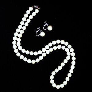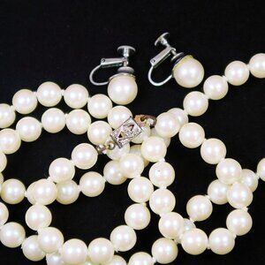 Vintage Faux Pearl Necklace & Clip-On Earrings Set Mid-Century Jewelry