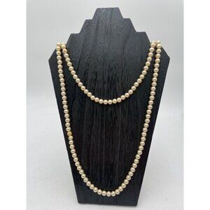 Vintage Faux Pearl Necklace Intricate Clasp 26"