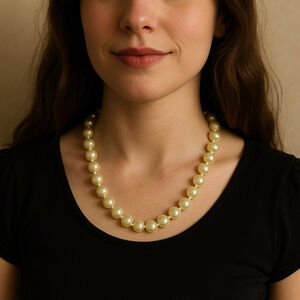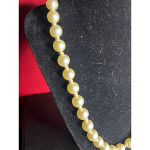 The pearls possess a soft white hue with subtle golden undertones, more radiant and neutral in natural light than they appear under indoor lighting. Excellent vintage condition with only minimal wear consistent with age. Whether paired with a black cocktail dress or a crisp blouse, this necklace delivers instant old-Hollywood glamour.