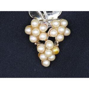 Vintage Faux Pearl Scarf Clip Grapes Bunch Gold Tone in Gift Box