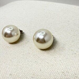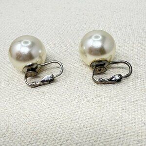 Vintage Faux Pearl Stud Earrings Silver-Tone Clip On Retro Bauble Kitchy