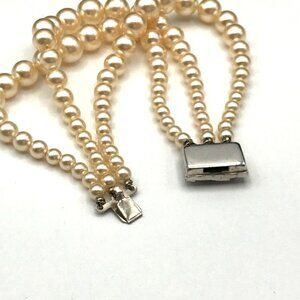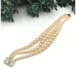 Vintage Faux Pearl Triple Strand Bracelet With Rhinestone Clasp *See notes