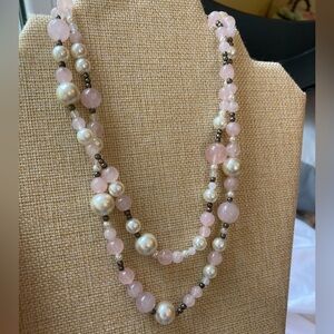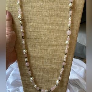 Vintage Faux Pearls & Rose Quarts 34” Long Necklace