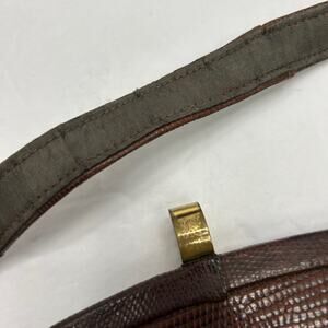Vintage Faux? Snake Skin Lizard Lift Lock Closure Brown Handbag Purse Unbranded