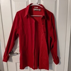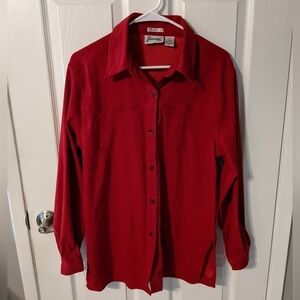 Vintage Faux Suede Joanna Stretch Oversized Red Button Up Blouse Size Medium