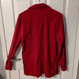 Faux Suede, Suede, Oversized, Medium, Size Medium, Red, Comfy, Warm, Fall, Blouse, Long Sleeve, Button Up, Spandex, Polyester, Size M, Academia, Back to School, Business Casual, Career, Office, Women, Woman, Women's, Stretch, Joanna, Vintage, Pretty, Nordstrom, Button Cuff, Comfortable, Everyday, Shacket, Top, Shirt, Vintage, Retro, EUC, 1990s, 90s, Y2K, Bright, Fun, Colorful, Longline, Blouse, Side Slits