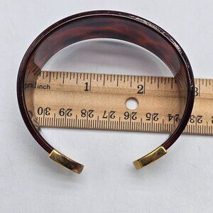 Vintage Faux Tortoise Shell Cuff Bracelet With Gold Tone Ends