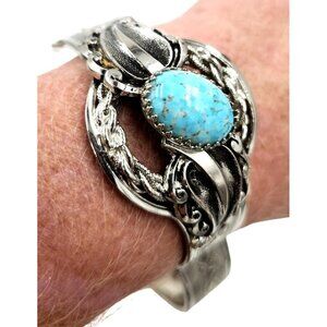 Very beautiful 1970's vintage faux turquoise cuff bracelet. Goes nicely with any western outfit. No maker markings.