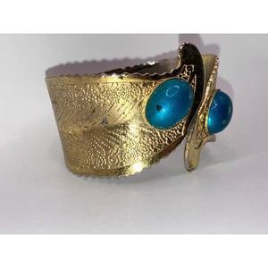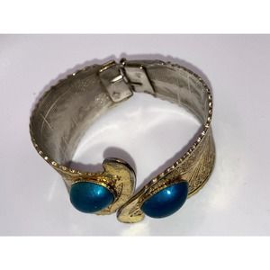 Vintage Faux Turquoise Silver-Tone Cuffs Hinge 2.25 Inch Wide Bracelet!