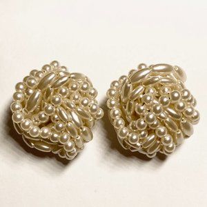 Vintage Faux White Pearl Clip On Earrings Beaded Cluster Gold Tone 70s Taiwan