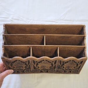 Vintage Faux Wood Dest Organizer. Beautiful Carved Design 1960's-70's