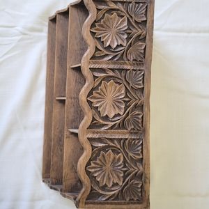 This great desk organizer is a vintage faux wood beautifully designed organizer for your desk or kitchen. Excellent condition no chips or cracks, well made heavy plastic with beautiful carved design made by Lerner. Great collection piece or usefull for bills, recipes, cards and more. Boho chic decor. Measures 7 inches tall x 12 inches wide x 4 inches deep.