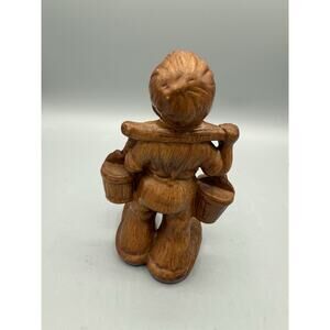 “Vintage Faux Wood Plastic Figurine 7” Boy w/ Buckets Made in Hong Kong