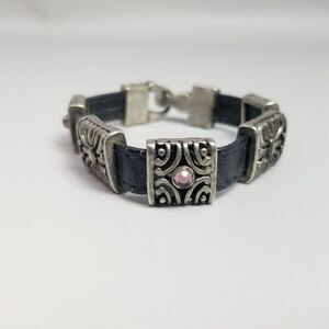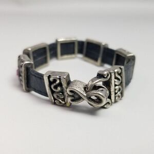 Vintage Faux Leather and Silver Tone Hardware Bangle Bracelet, Unsigned