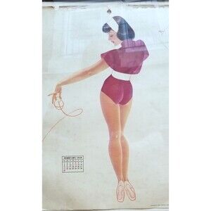 Vintage Fawcett George Petty Pinup Framed February 1948 Esquire Calendar Page 17.5"x14"