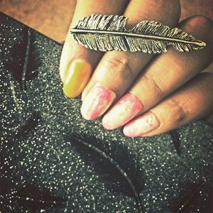Vintage feather ring . "Lucky you " engraved on inner side of the ring band. Size-7