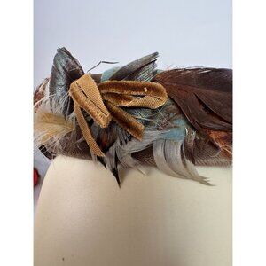 Vintage Feathered Fascinator Hat Brown & Beige Woven Design Womens Accessory Ele