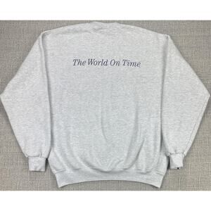 Classic heather gray crewneck sweatshirt featuring the iconic FedEx (Federal Express) logo on the front in purple and orange. Back features "The World On Time" printed in purple text.