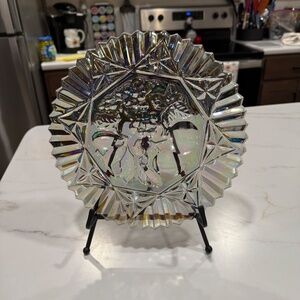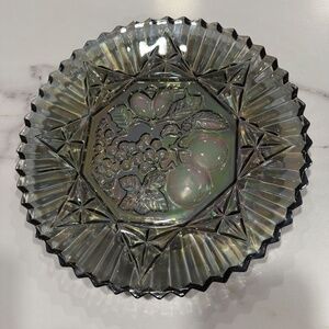 Vintage Federal Carnival Glass, Pioneer Smokey Gray Iridescent Carnival Glass Fruit Design Platter
