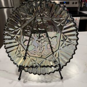 Vintage Federal Carnival Glass, Pioneer Smokey Gray Iridescent Fruit Platter