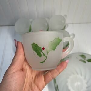 Vintage Federal Frosted Holly Berry Ivy Punch Biwl Set 12 Cups